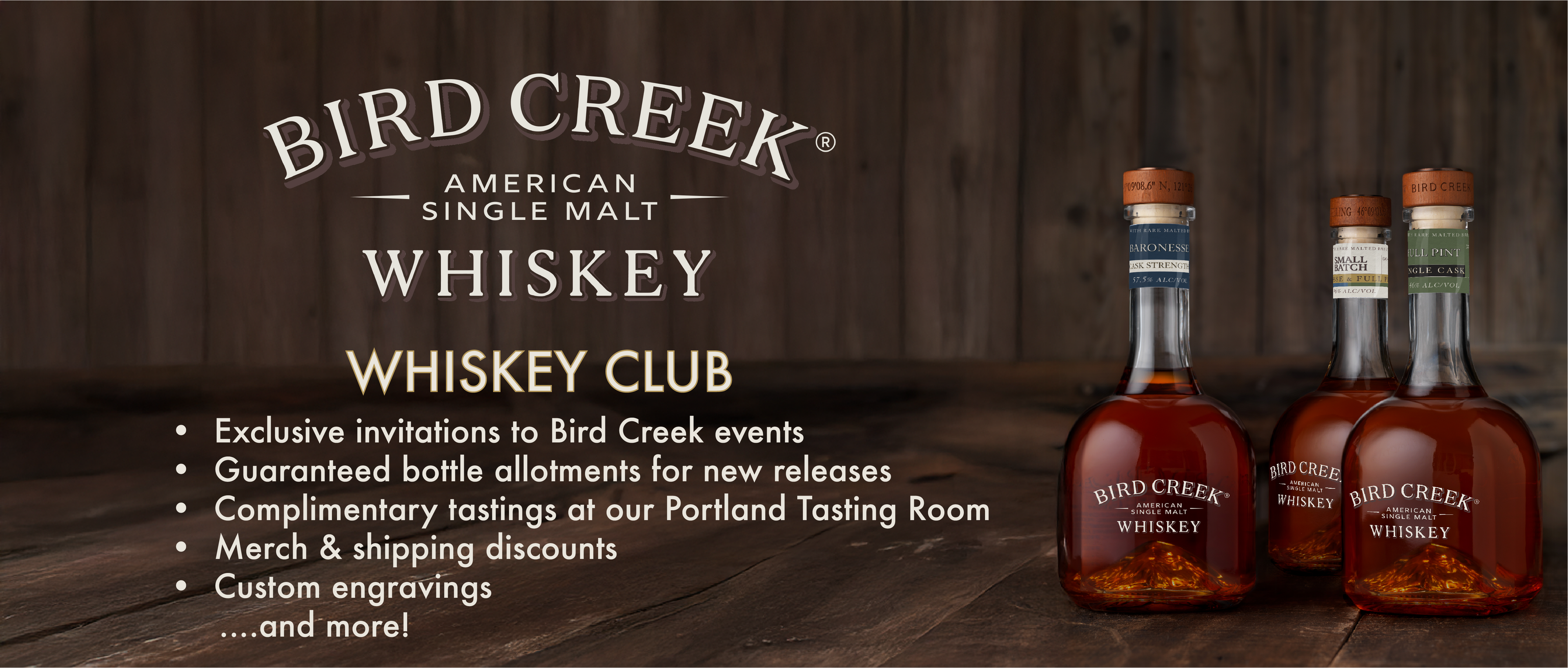 - 20% discount on Bird Creek Whiskey merchandise